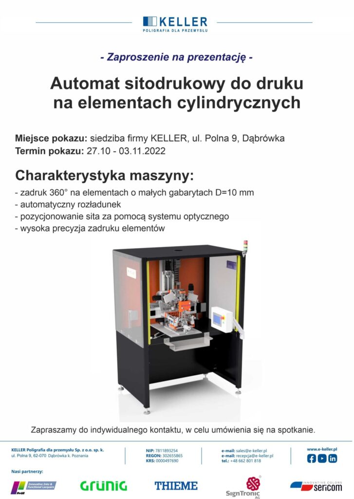 21 gru Zaproszenie na prezentację sitodrukarki do zadruku świeczek. Zobacz jak pracuje najnowsza ciekawa maszyna Keller - sitodrukarka do zadruku świec . Prezentacja maszyny odbędzie się w sie... Continue reading