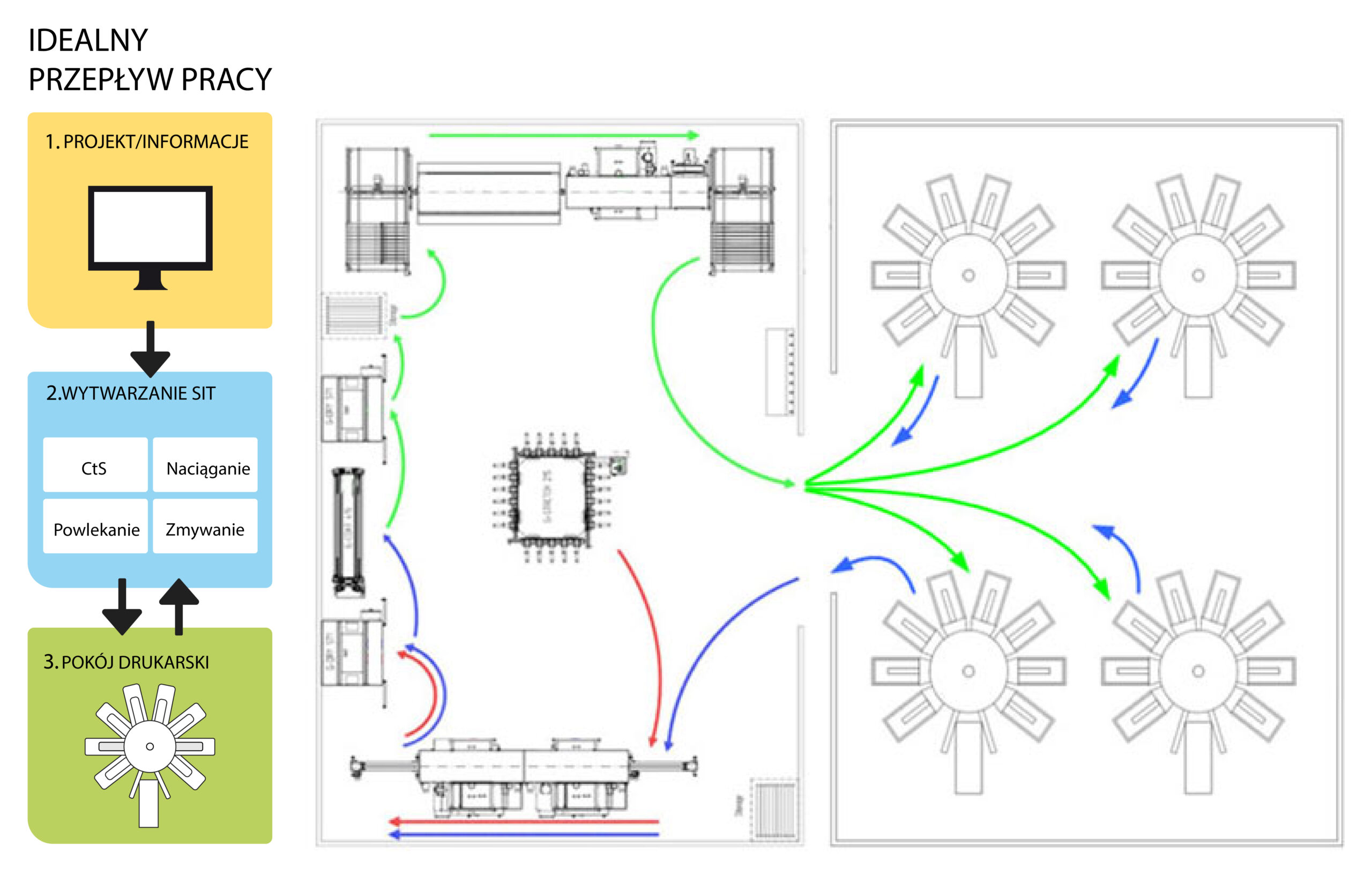Kluczowe jest to, aby wszystkie zaangażowane działy – Grafika/RIP, dział matryc i szablonów oraz drukarnia – współpracowały ręka w rękę.