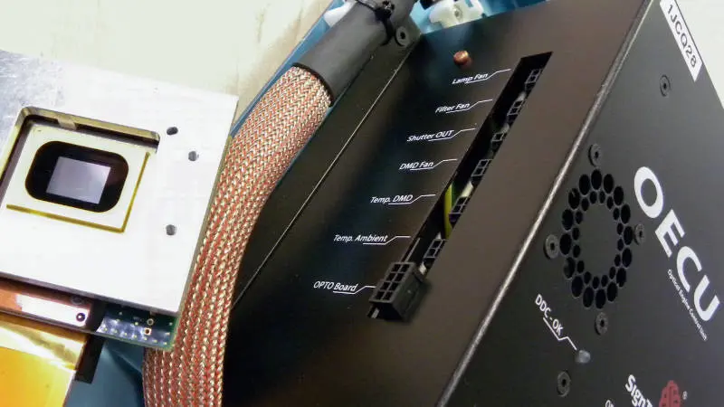 Jednostka sterująca OECU może sterować różnymi typami DMD (0.7 XGA 4100 / 0.95 1080p).