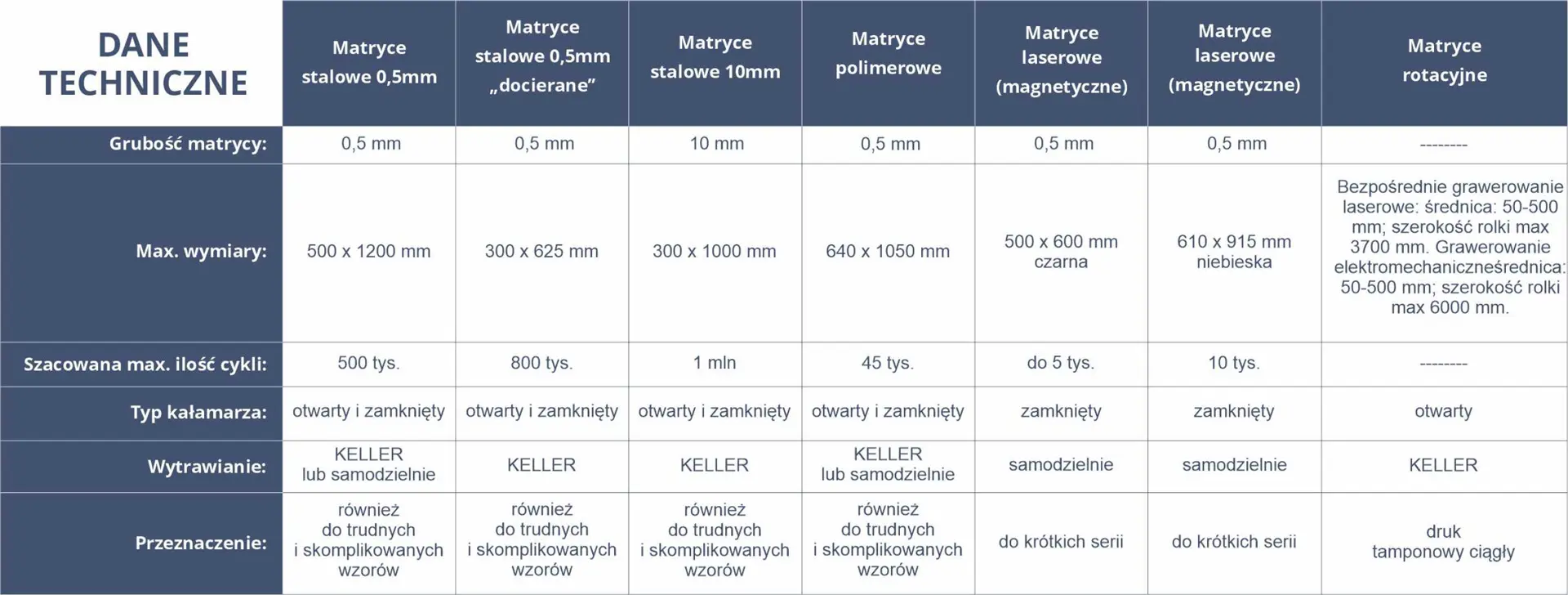 Zapraszamy do zapoznania się z naszą bogatą ofertą matryc do poligrafii oraz do kontaktu!