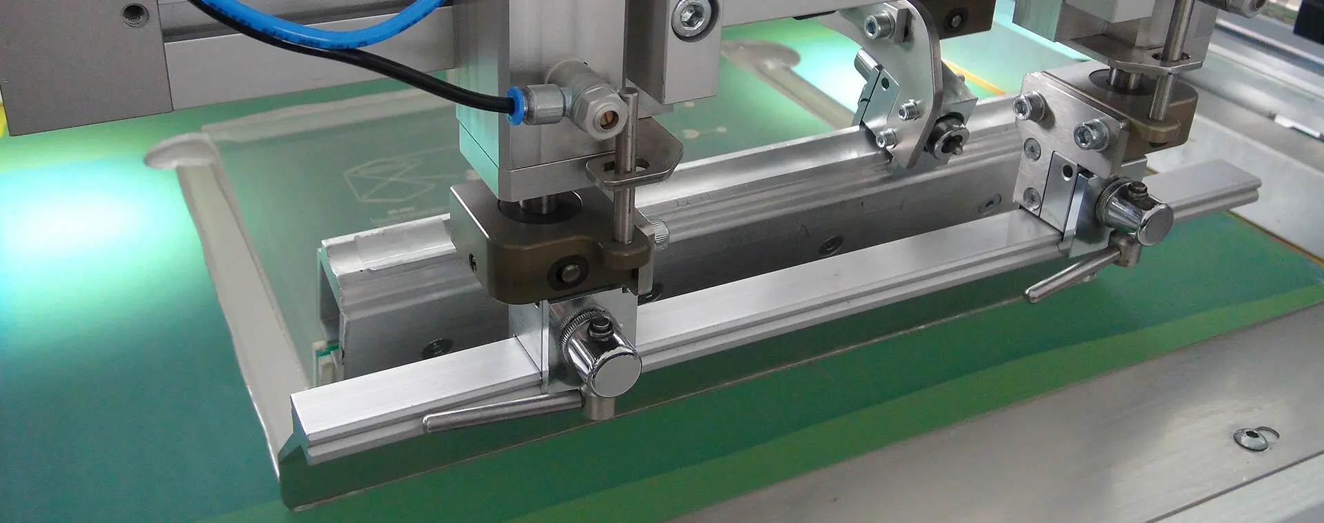 Wysoko precyzyjna maszyna do sitodruku z automatycznym wyrównywaniem sita i podłoża za pomocą systemów kamer CCD.