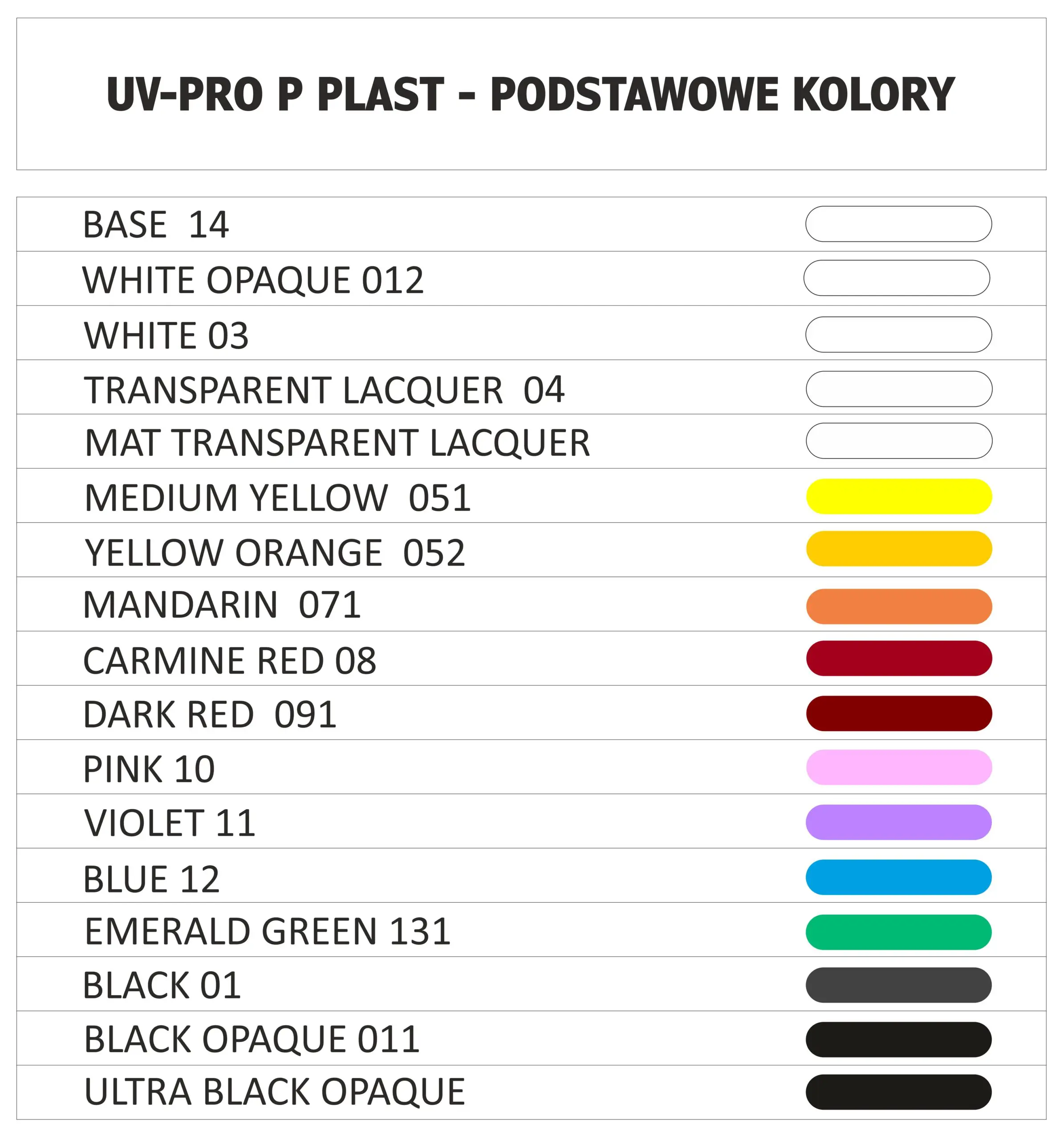Farba UV-PRO P PLAST jest farbą pierwszego wyboru na tworzywa typu PP i PE, ponadto jest odpowiednia do zadruku na PETG, PETP, poliwęglan, polistyren, PMMA.