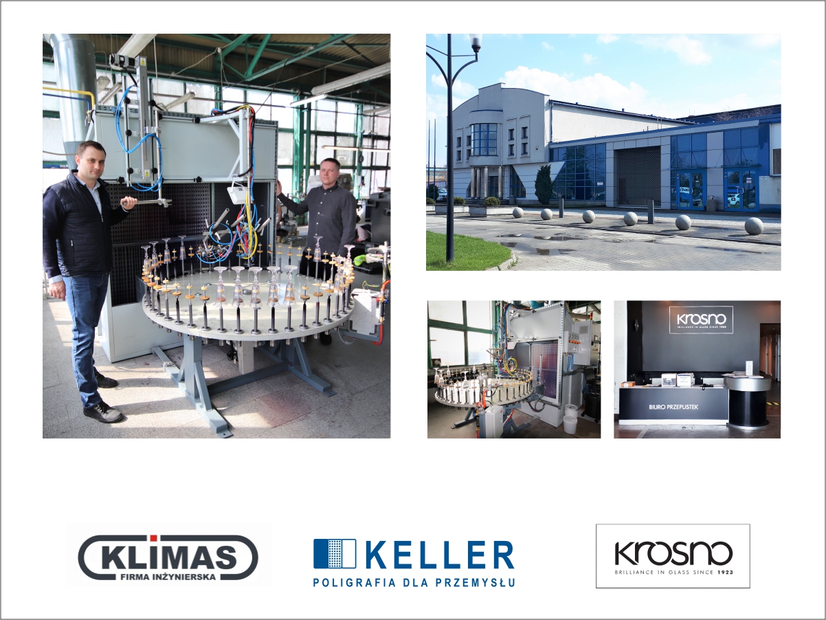 W Krośnieńskiej Hucie Szkła „KROSNO”, będącej producentem szkła gospodarczego, jednym z liderów rynku światowego w branży, przedstawiciele z firmy KLIMAS przy współudziale przedstawicieli firmy KELLER wykonali instalację gniazda malarskiego przeznaczonego do nanoszenia farb wodorozcieńczalnych na opakowania szklane. Urządzenie składa się z kabiny malarskiej oraz karuzeli do nakładania detali z aplikacją malarską.