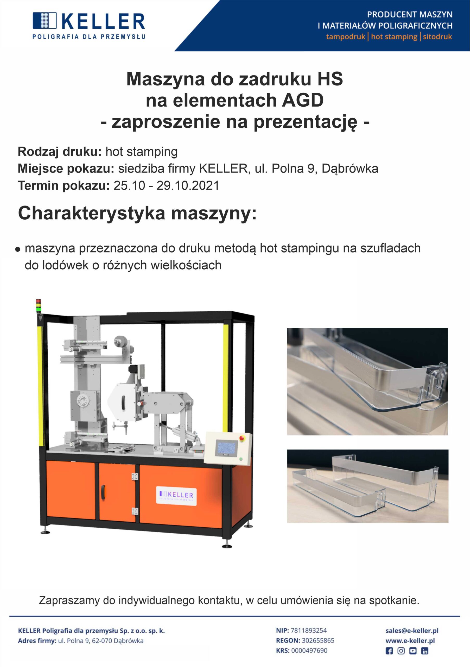 Pokaz maszyny w trakcie pracy odbędzie się w siedzibie firmy KELLER w Dąbrówce, ul. Polna 9, w terminie 25-29 października br.